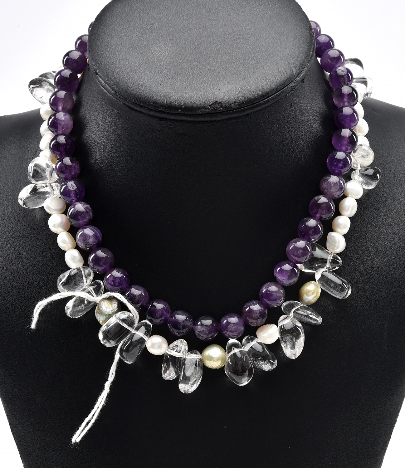 TWO STONE BEAD NECKLACES INCLUDING AMETHYSTH AND QUARTZ