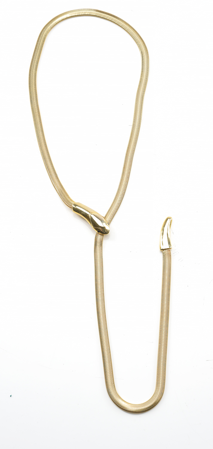 A RETRO SNAKE LARIAT NECKLACE IN GILT, ADJUSTABLE LENGTH