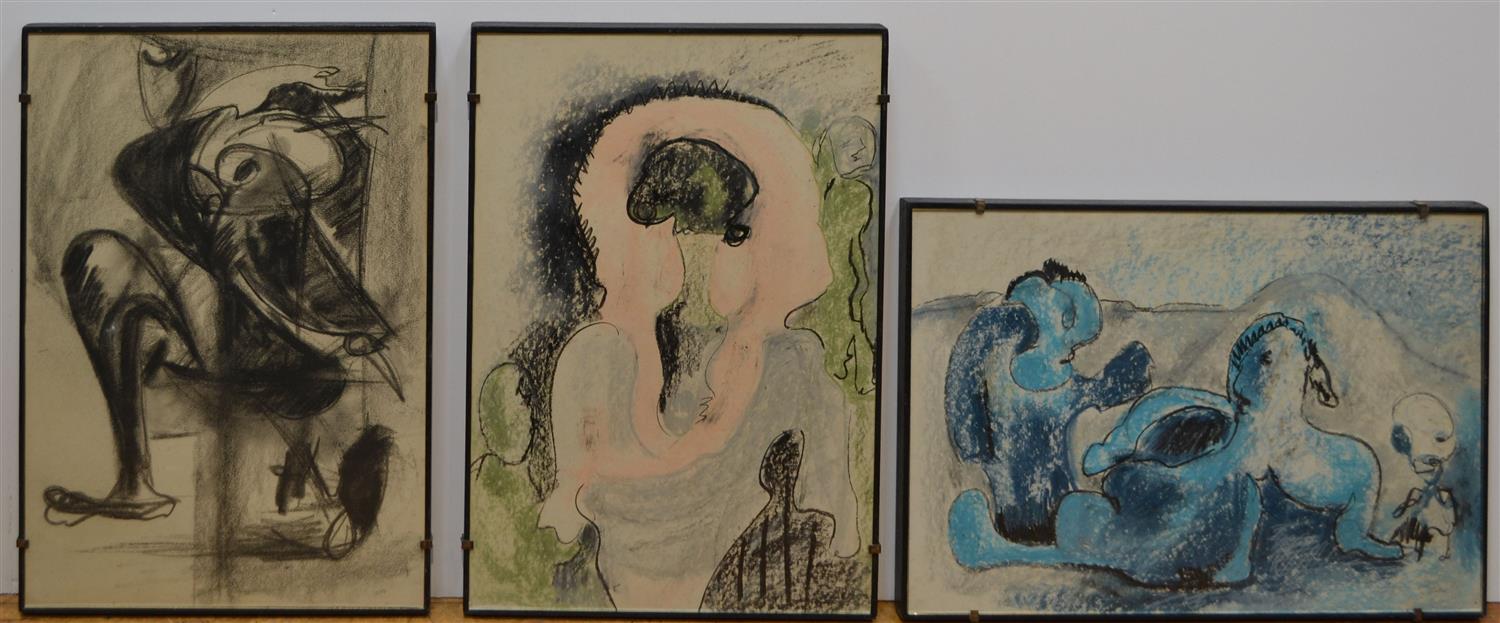 ARTIST UNKNOWN, TRIO OF ABSTRACT WORKS, PASTEL ON PAPER, SIZES VARY, CONDTION: VERY GOOD