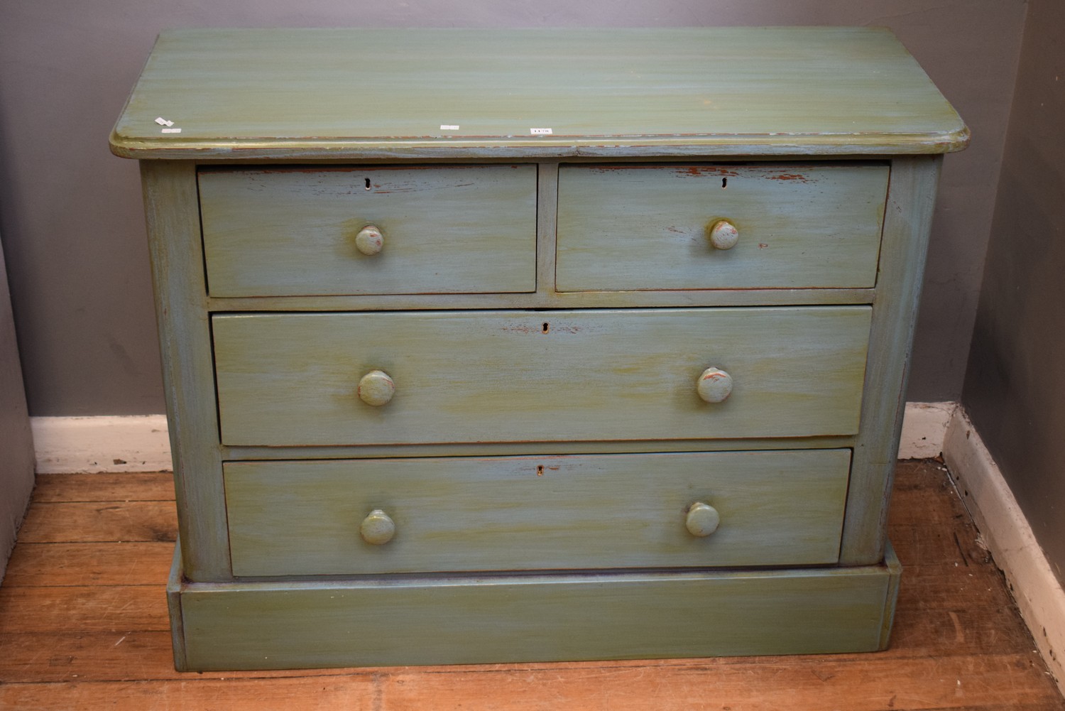 A RUSTIC GREEN PAINTED FOUR DRAWER CHEST (81H X 105W X 43D CM)