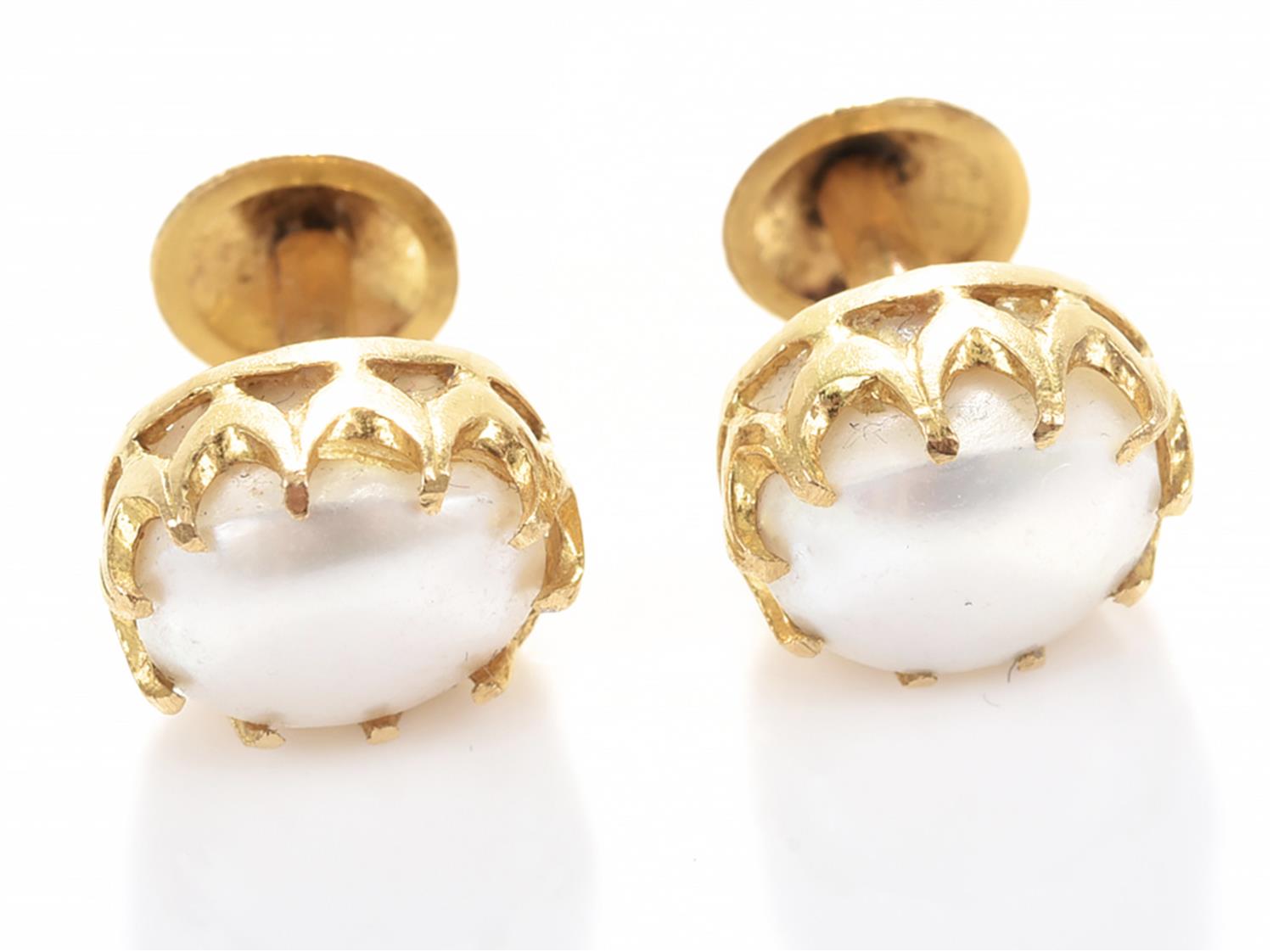 A PAIR OF PEARL DRESS STUDS IN 22CT GOLD