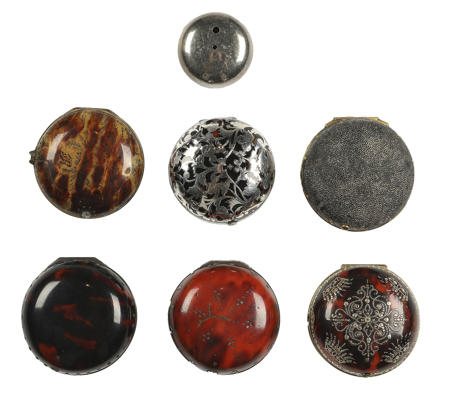 A COLLECTION OF SIX WATCH CASES AND A WATCH BELL