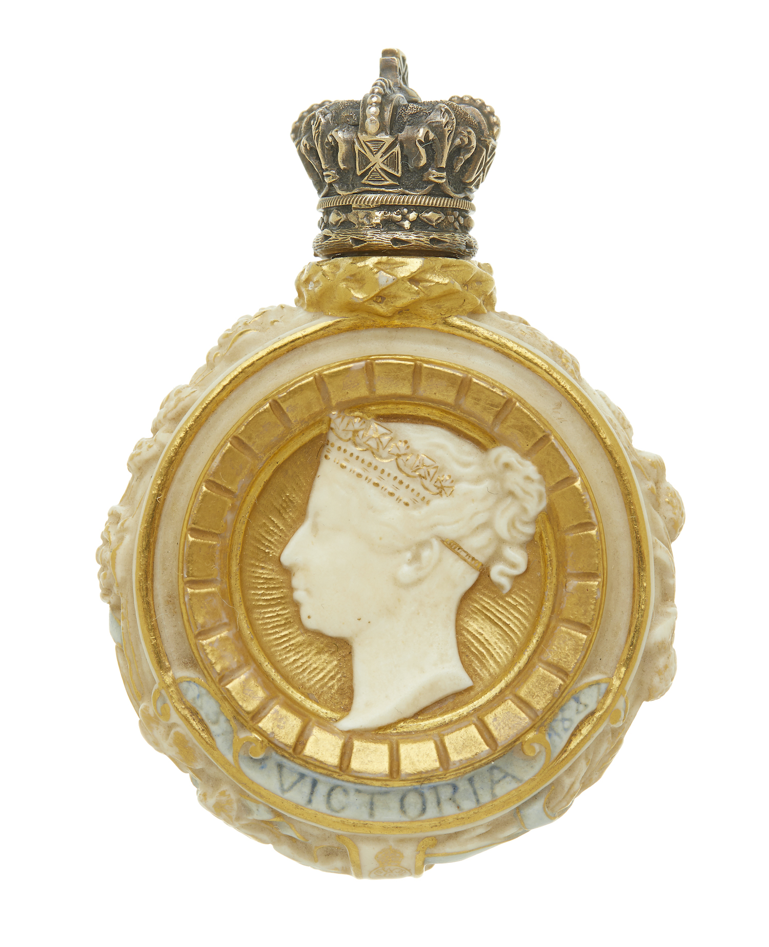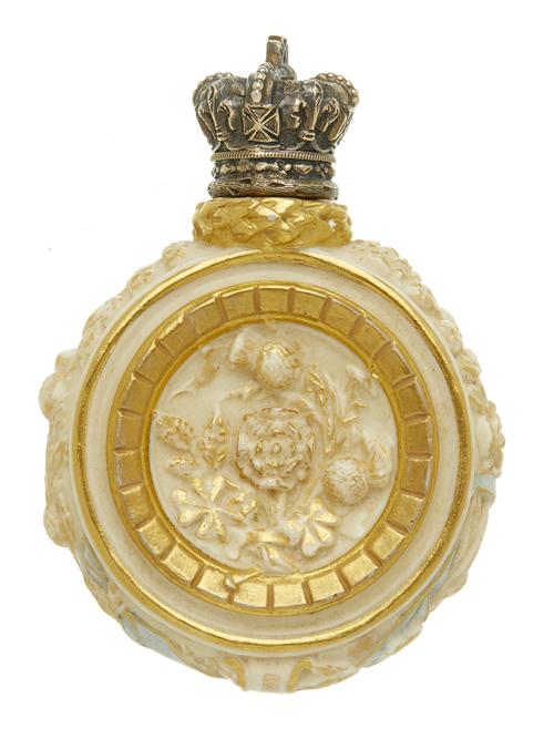 A ROYAL WORCESTER COMMEMORATIVE SCENT BOTTLE