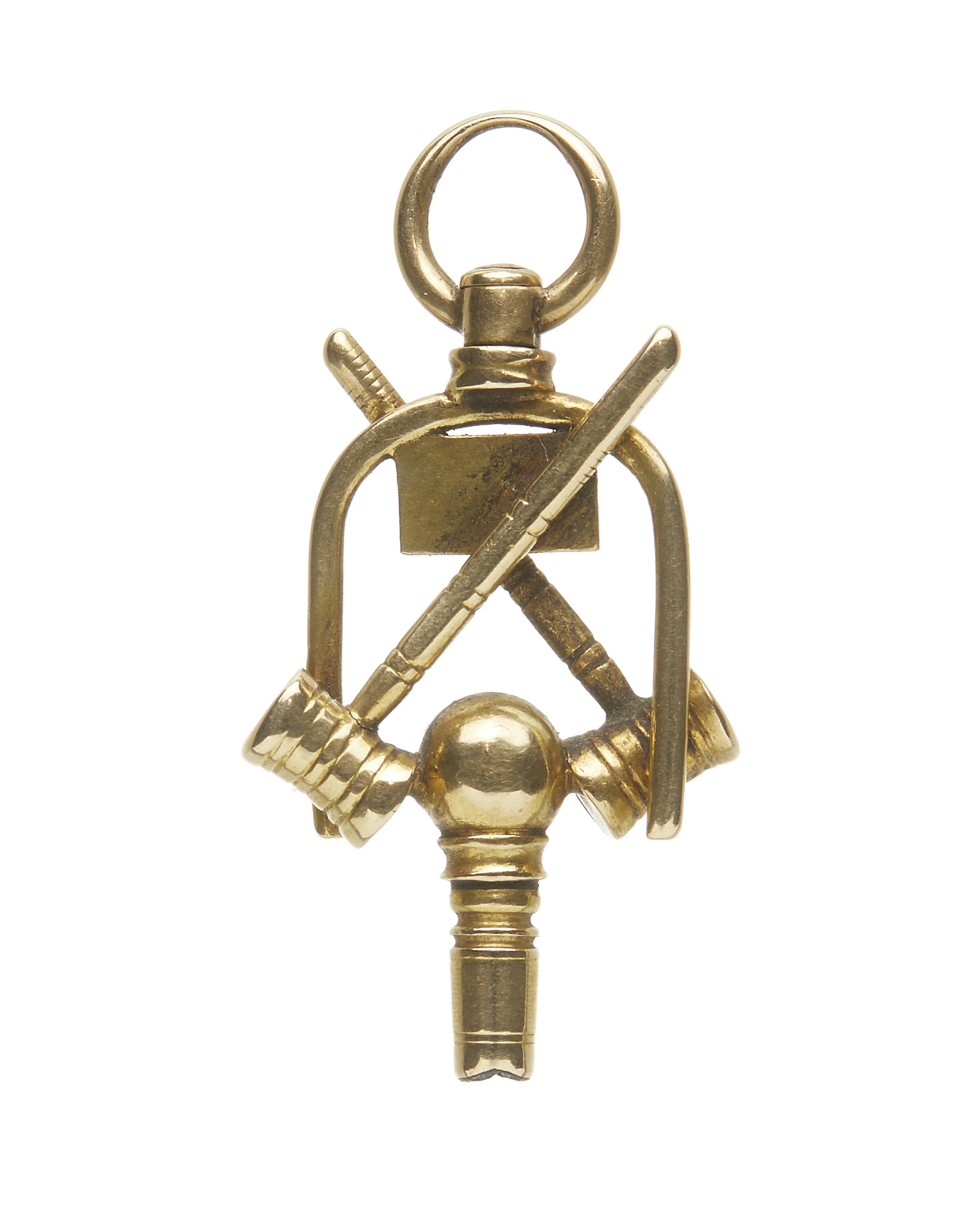 One modelled as a pair of polo mallets, one plain rectangular with engraved decoration, the other of two putti profiles.