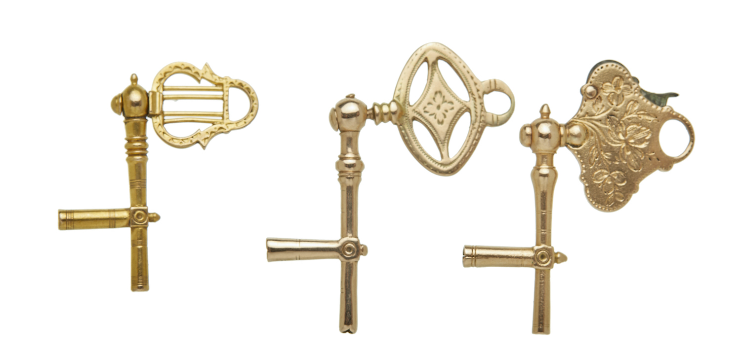 THREE 18TH CENTURY GOLD CRANK KEYS