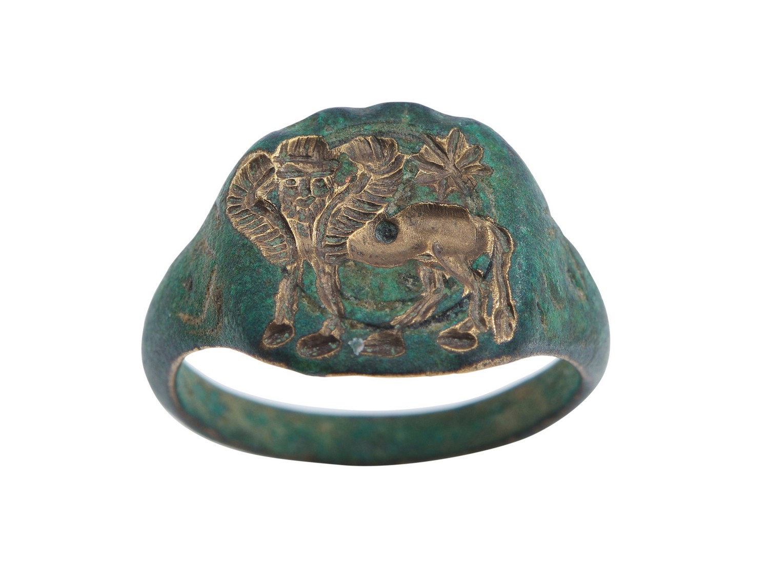 The signet style ring with cast bezel depicting a human headed winged horse, this creature is identical to the Islamic Buraq.