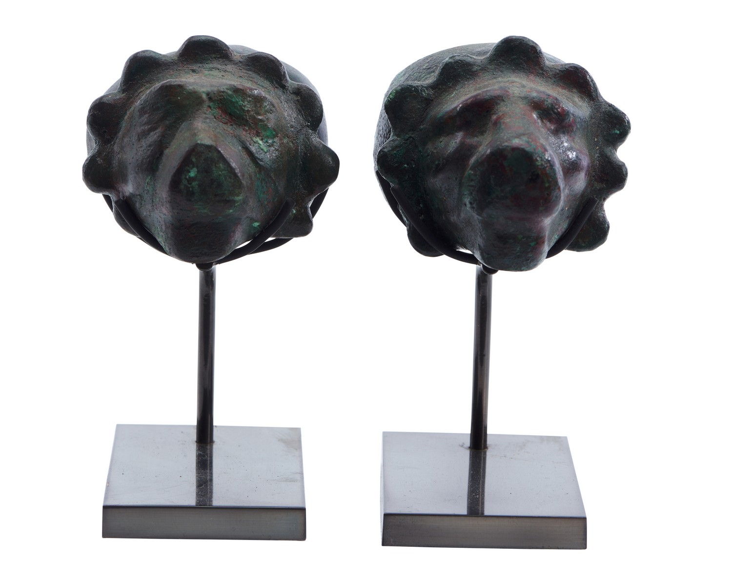 Possibly fixings from an ornamented nobleman's chair. Presented on custom made display stands.