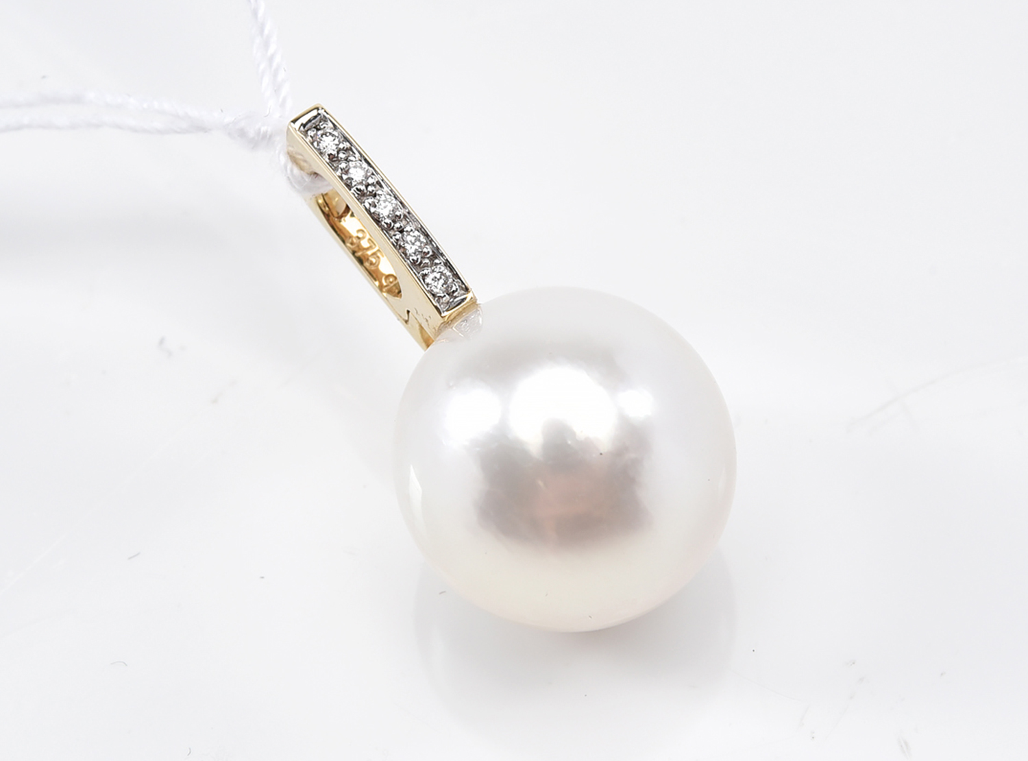 A SOUTH SEA PEARL (13.5MM) AND DIAMOND ENHANCER IN 9CT GOLD