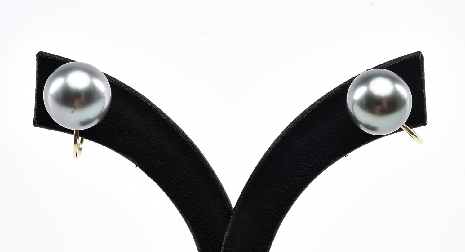 A PAIR OF TAHITIAN PEARL (10MM) TO SCREW BACK EARRINGS IN 14CT GOLD