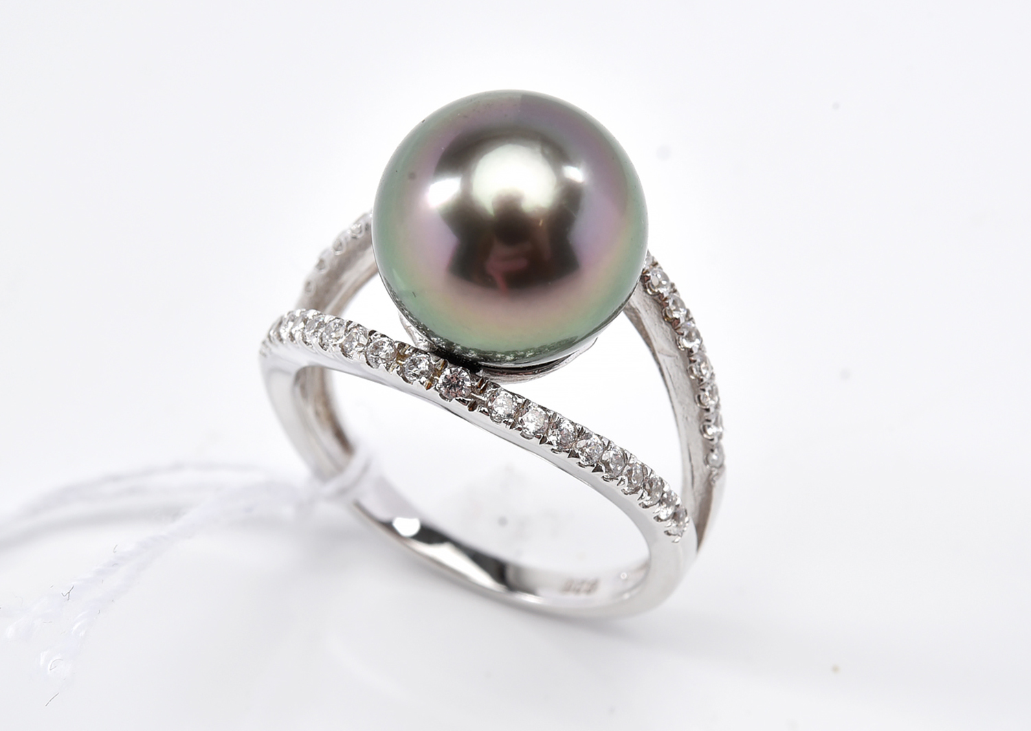 A TAHITIAN PEARL (11.4MM) RING IN STERLING SILVER, SIZE N