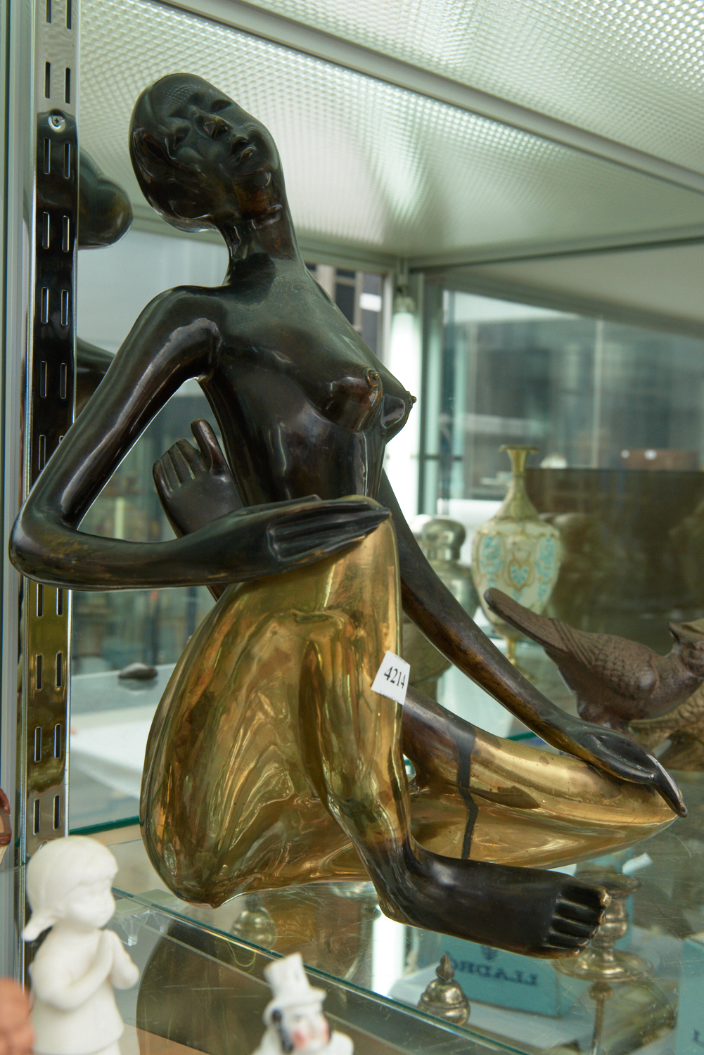 A PATINATED BRASS FIGURE OF A SEATED FEMALE NUDE, STAMPED 'SURAWONG' AND NUMBERED 42/300 (LACKING STAND, RESTS UNEVENLY), 42 CM HIGH