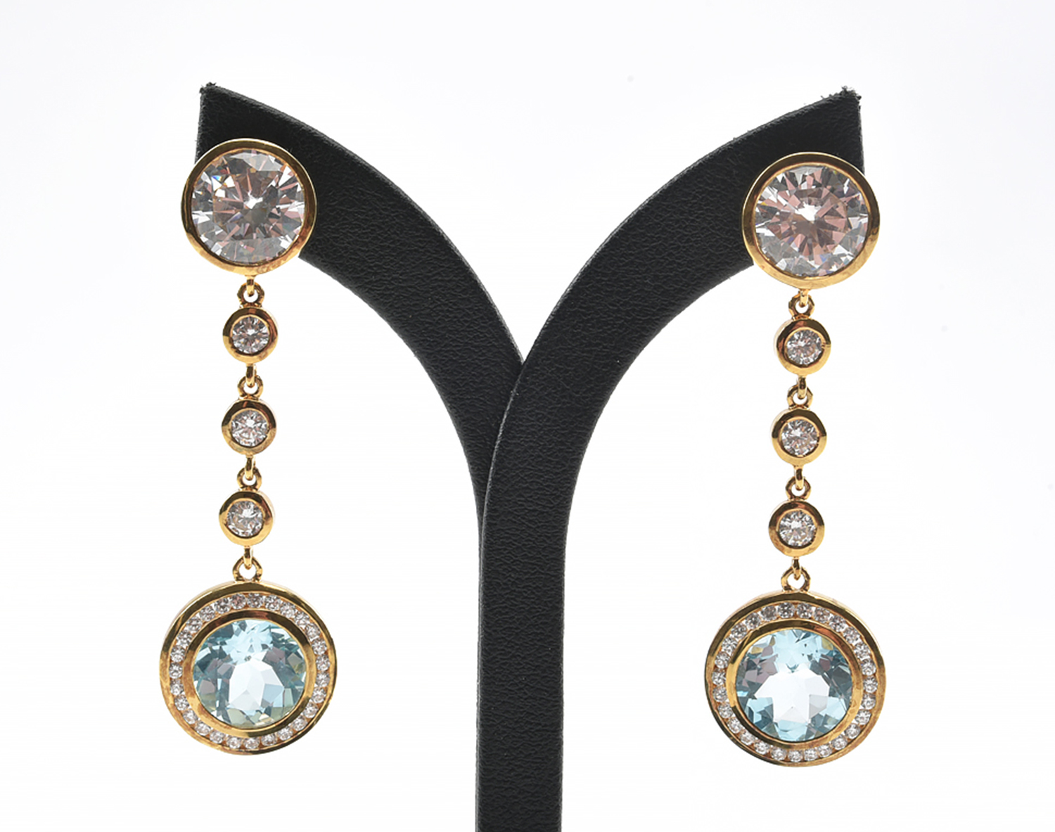 A PAIR OF TOPAZ AND CUBIC ZIRCONIA DROP EARRINGS IN SILVER GILT