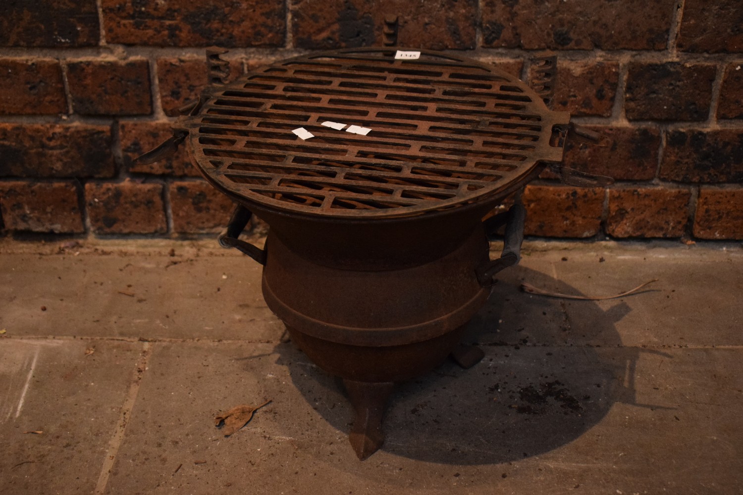 A SMALL CAST IRON POT BELLY COOKER (33H X 38D CM)