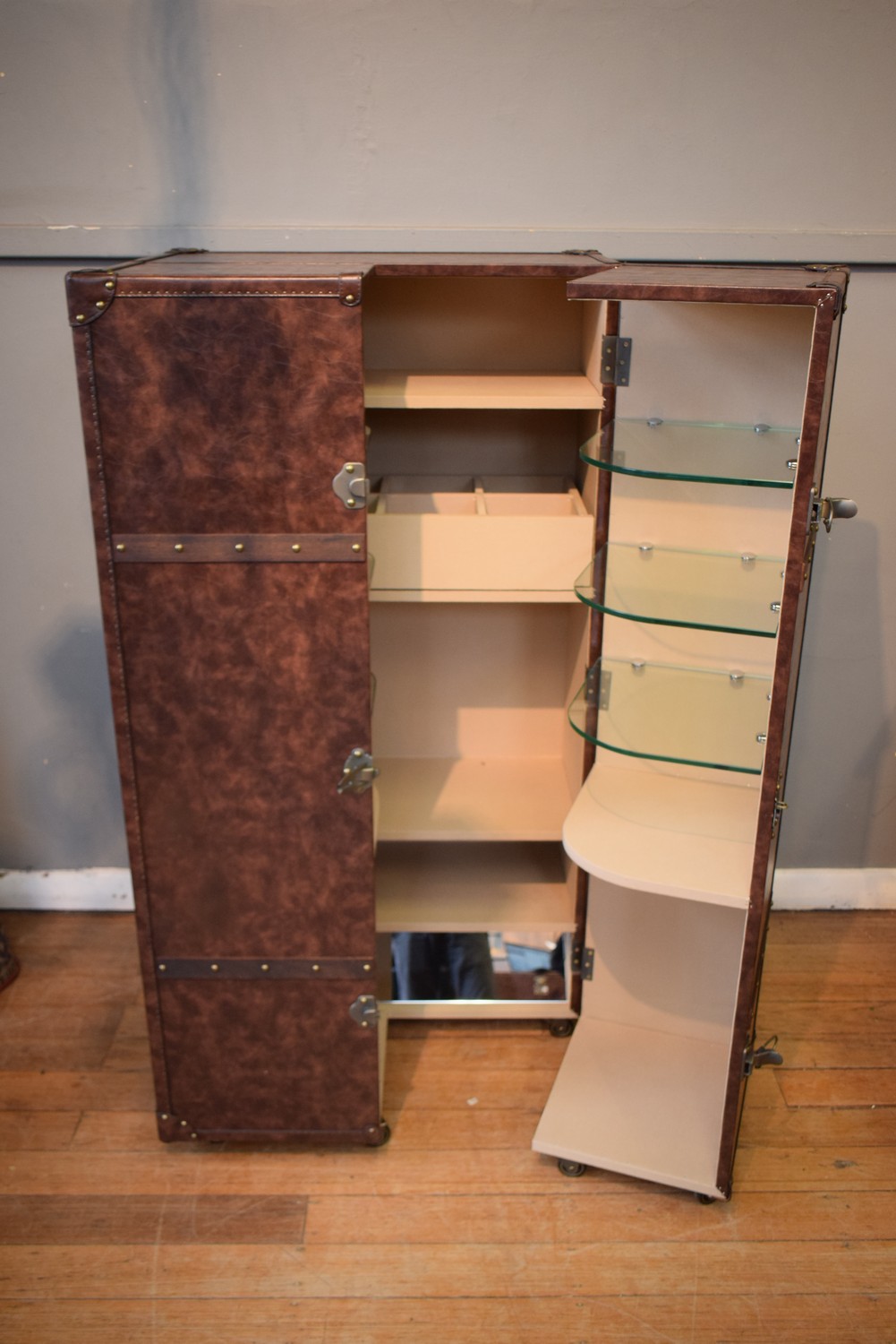 A VINTAGE STYLE SHIPPING DISPLAY CABINET WITH GLASS SHELVING (154H X 80W X 68D CM)
