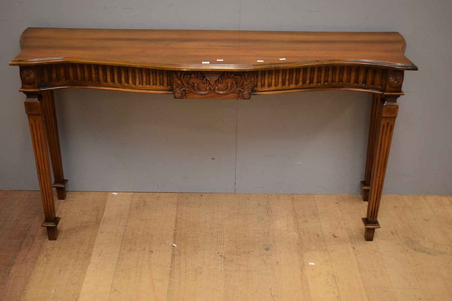 AN ADAM STYLE MAHOGANY CONSOLE TABLE (81H X 157W X 44D CM)