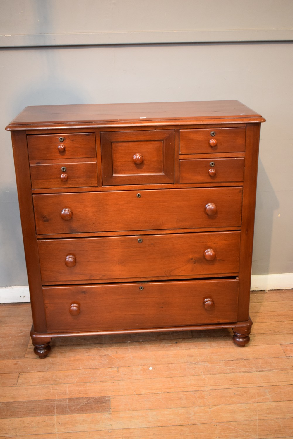 A VICTORIAN CEDAR SEVEN DRAWER CHEST (124H X 116W X 50D CM)
