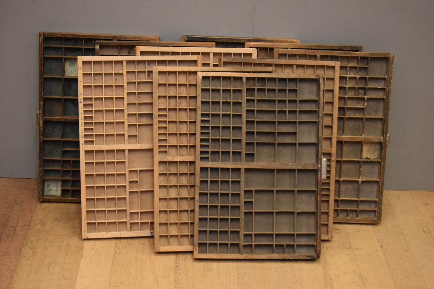 A COLLECTION OF TEN PRINTERS TRAYS (EACH APPROX 66H X 43W CM)