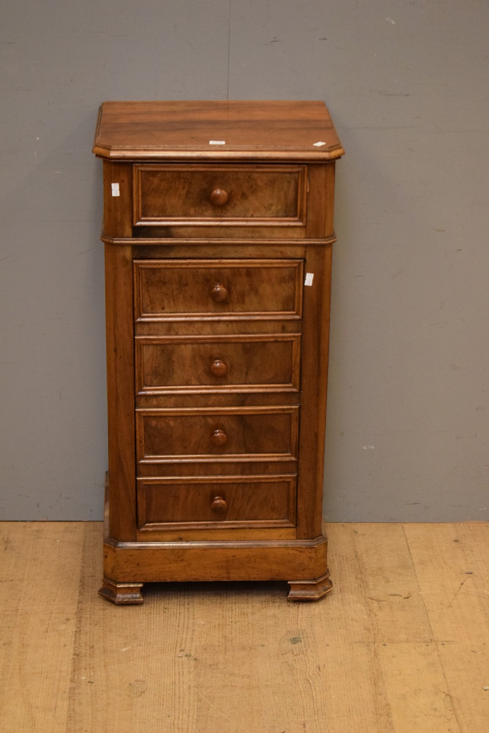 A SINGLE DRAWER FRENCH PROVINCIAL STYLE WALNUT BEDSIDE CABINET (87H X 43W X 33D CM)