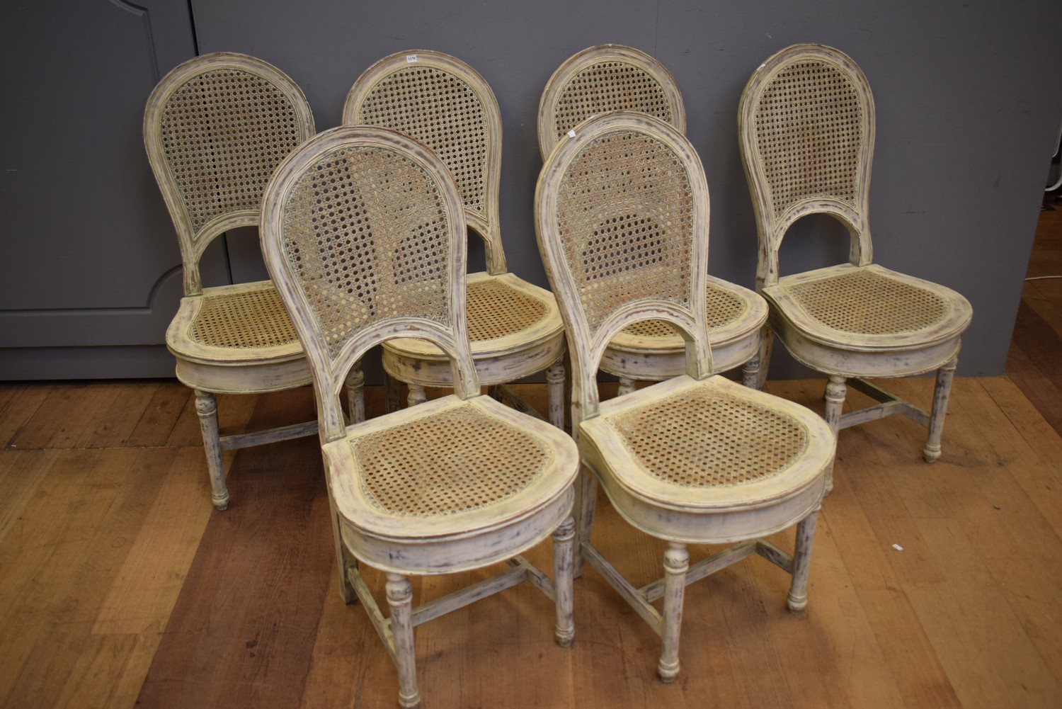 A SET OF SIX FRENCH STYLE RATTAN BISTRO CHAIRS (100H X 48W X 55D CM)