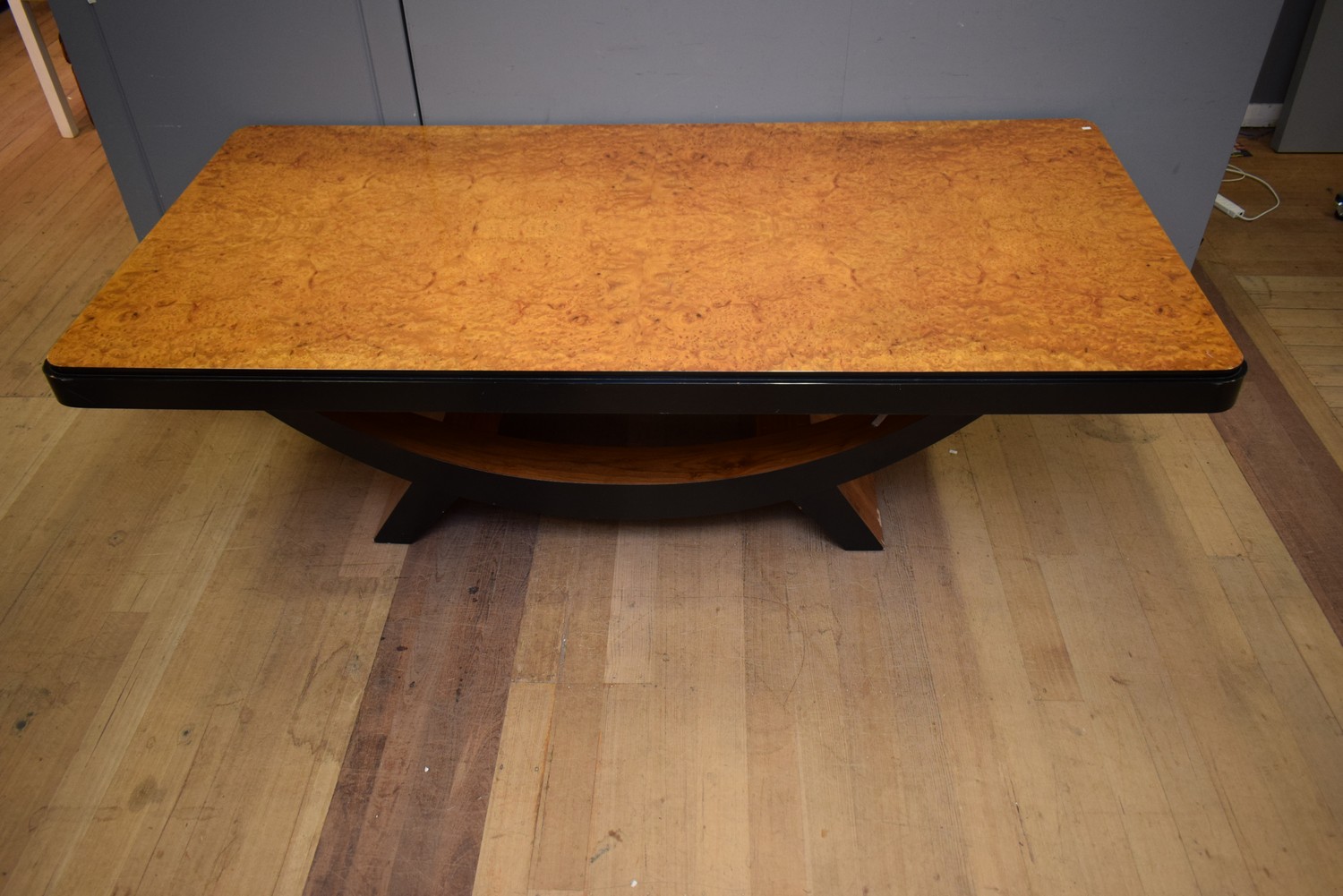 A LARGE ART DECO STYLE DINING TABLE (A/F) (78H X 141W X 121D CM)