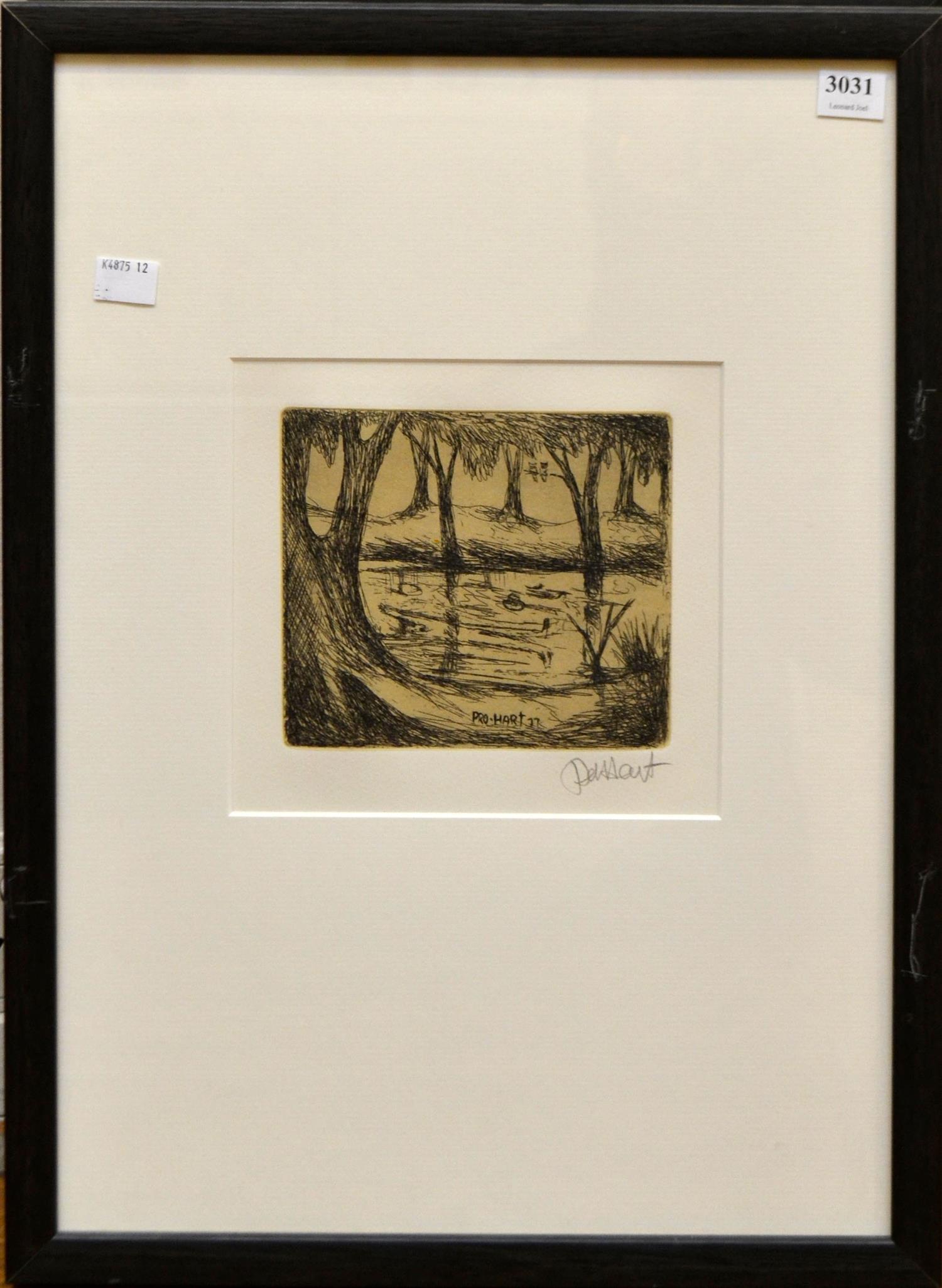 PRO HART, AND HIS VOICE CAN BE HEARD AS IT SINGS IN THE BILLABONGS FROM THE WALTZING MATILDA SERIES, ETCHING 74/100, SIGNED BELOW IMAGE, EDITIONED ON LABEL VERSO, 12.5 X 14CM, FRAME SIZE: 49 X 35.5CM