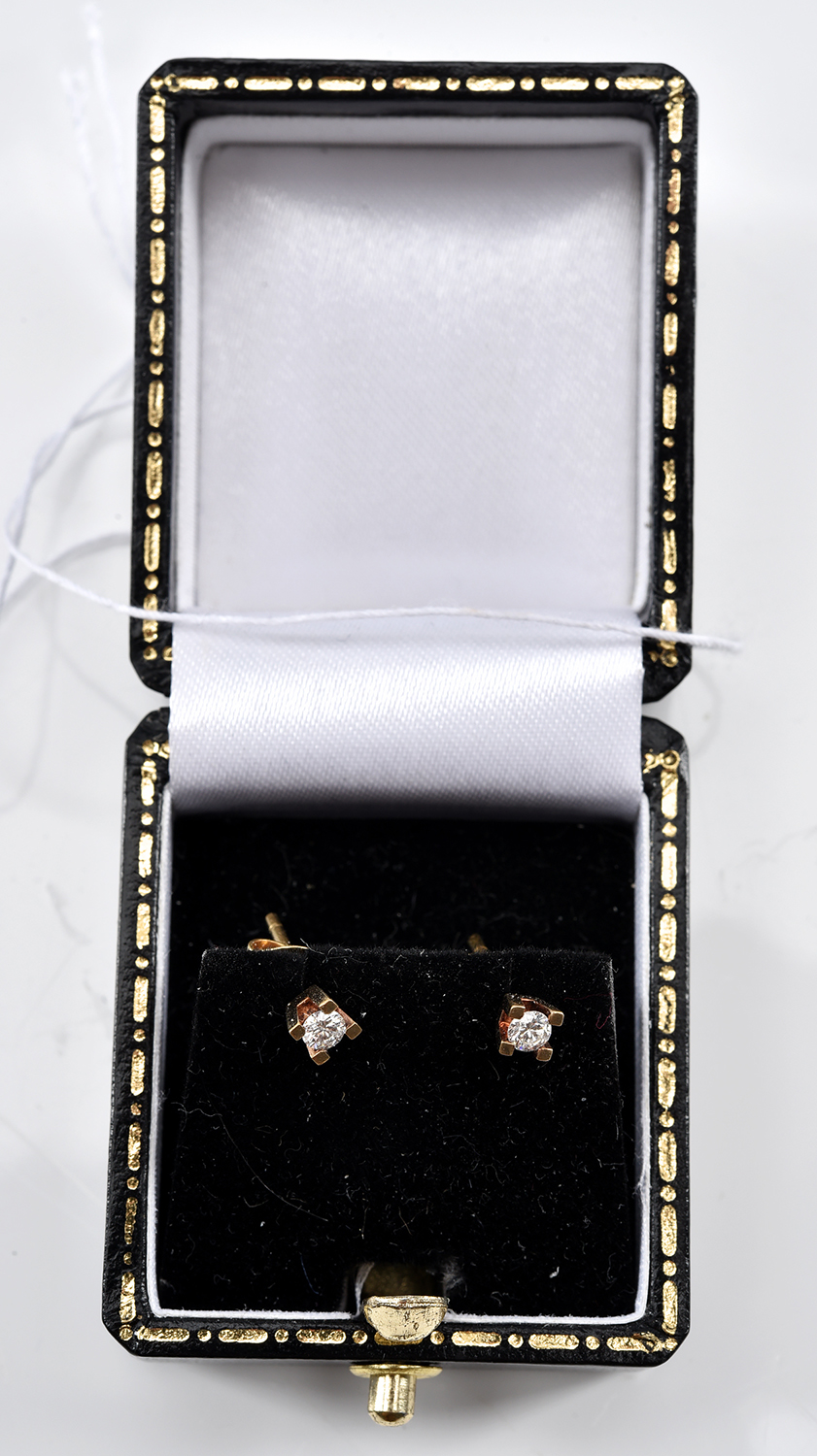 A PAIR OF DIAMOND STUD EARRINGS TOTALLING 0.14CTS, IN 18CT GOLD, BOXED