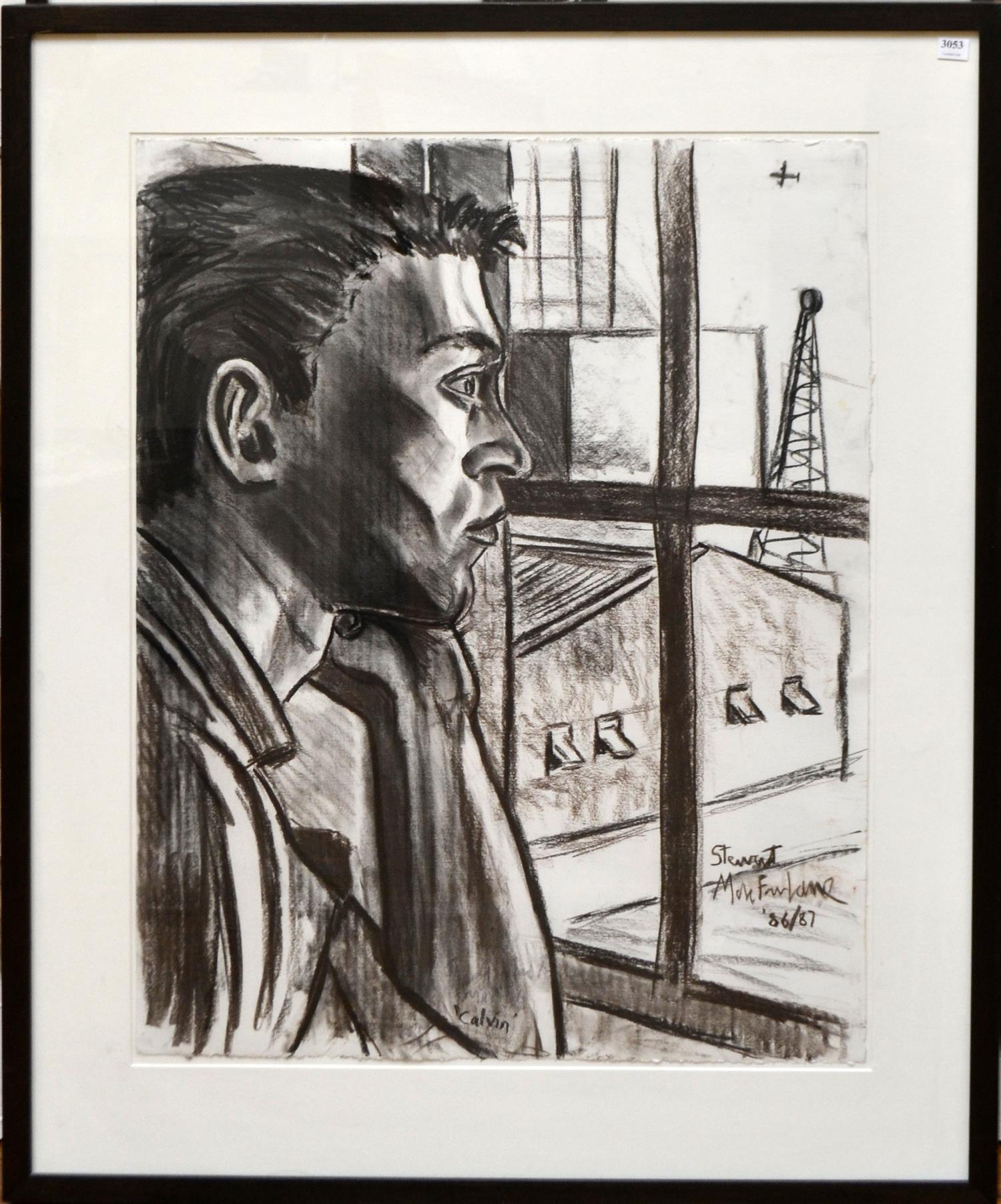 STEWART MACFARLANE, CALVIN 1986/87, CHARCOAL ON PAPER, 78 X 61CM, FRAME SIZE: 100 X 83CM, CONDITION: HANDLING MARKS AND SOME CREASING, FRAMED WELL
