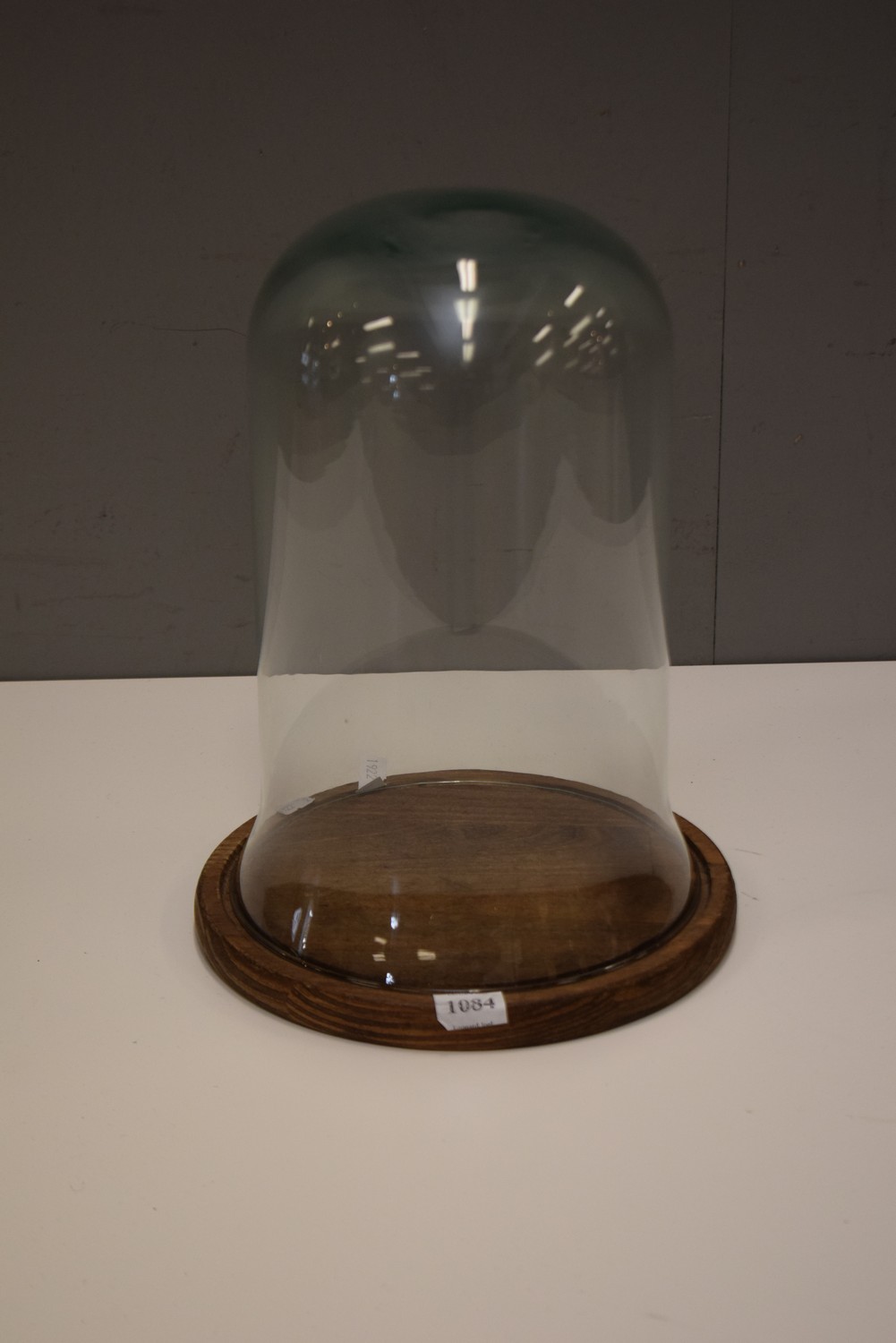 A GLASS DISPLAY DOME WITH TIMBER BASE (30H X 22D CM)