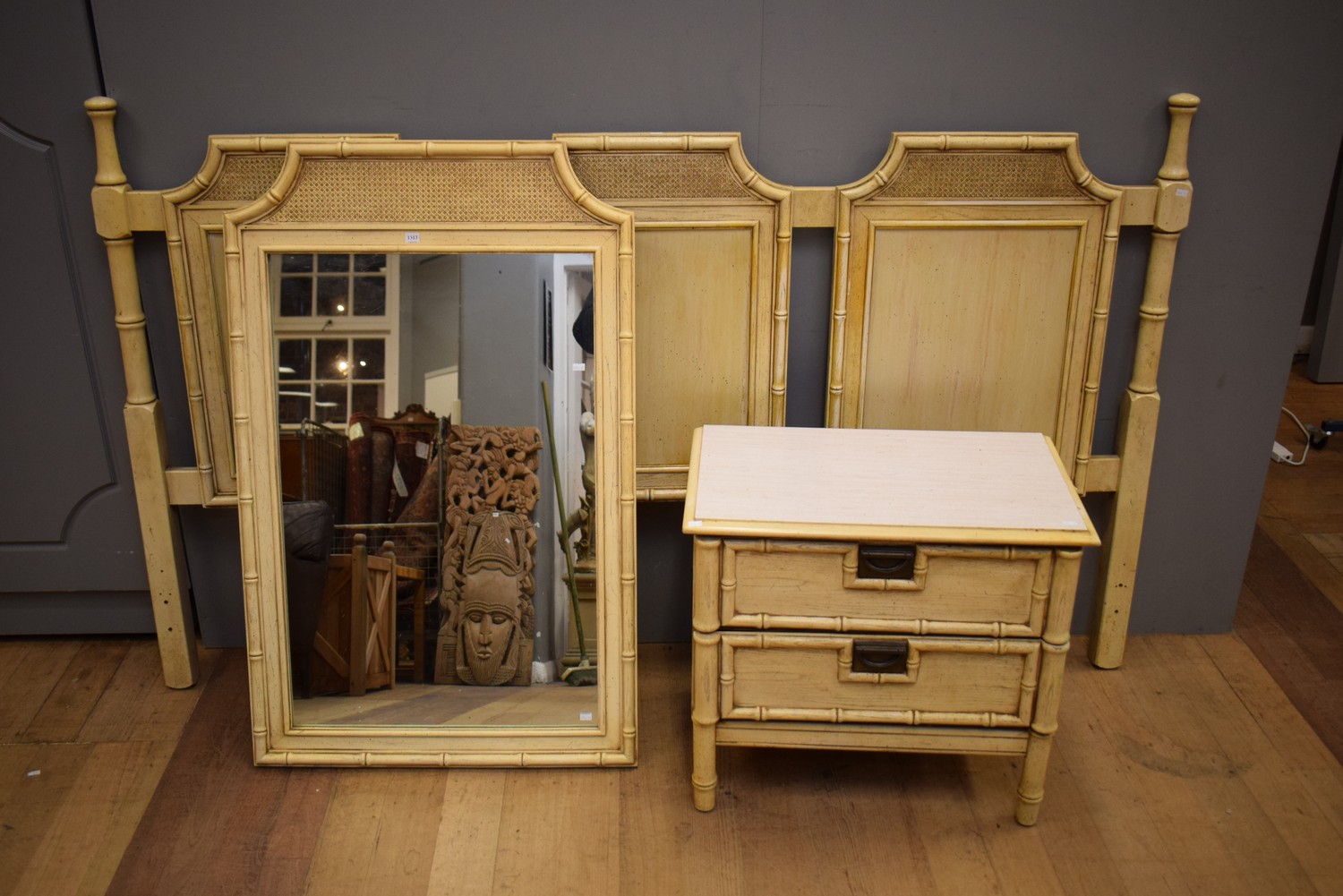 A SET OF THREE ITEMS COMPRISING BED HEAD, MIRROR AND BEDSIDE (BED HEAD 120H X 200W CM)