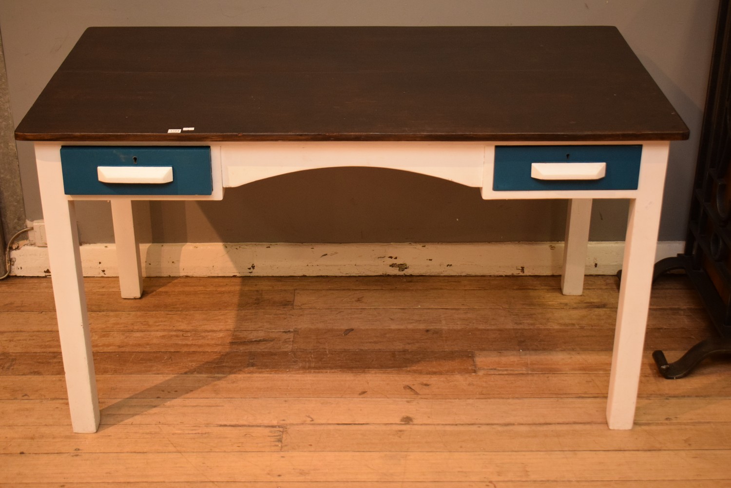 A RUSTIC PAINTED TWO DRAWER DESK (76H X 137W X 75D CM)