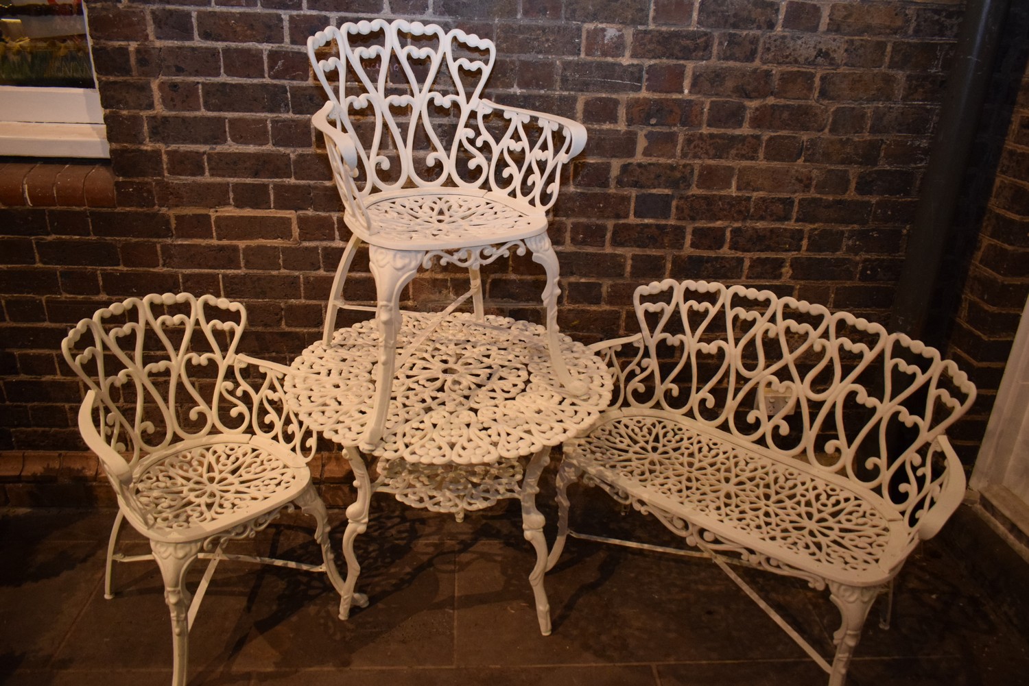 A FOUR PIECE OUTDOOR SETTING (TABLE 68H X 81D CM)