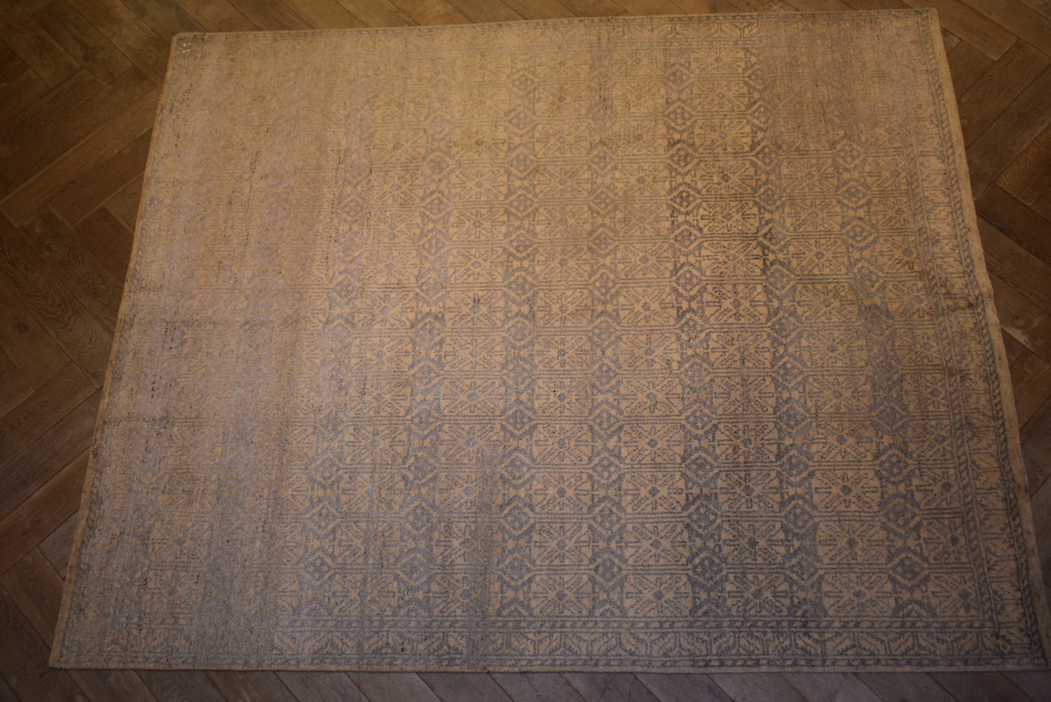 A HAND KNOTTED RUG WITH SCANDIVANIAN DESIGN, HAND SPUN WOOL AND BAMBOO SILK, 296 X 242 CM, RRP $4000
