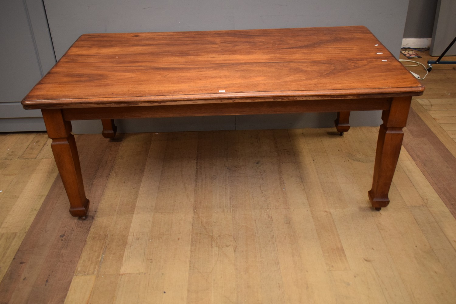 A QUEENSLAND MAPLE REFECTORY DINING TABLE ON CASTORS (75H X 183W X 104D CM)