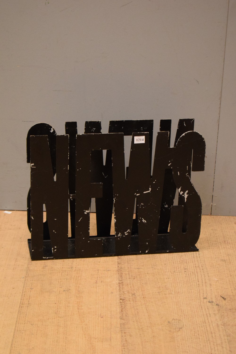 A METAL 'NEWS' MAGAZINE RACK (A/F) (32H X 42W X 10D CM)