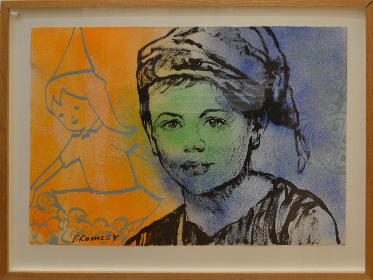 DAVID BROMLEY, UNTITLED (BOY WITH CAP), ACRYLIC ON PAPER, 76 X 111CM, FRAME SIZE: 97.5 X 131CM, CONDITION: GOOD, NO FAULTS