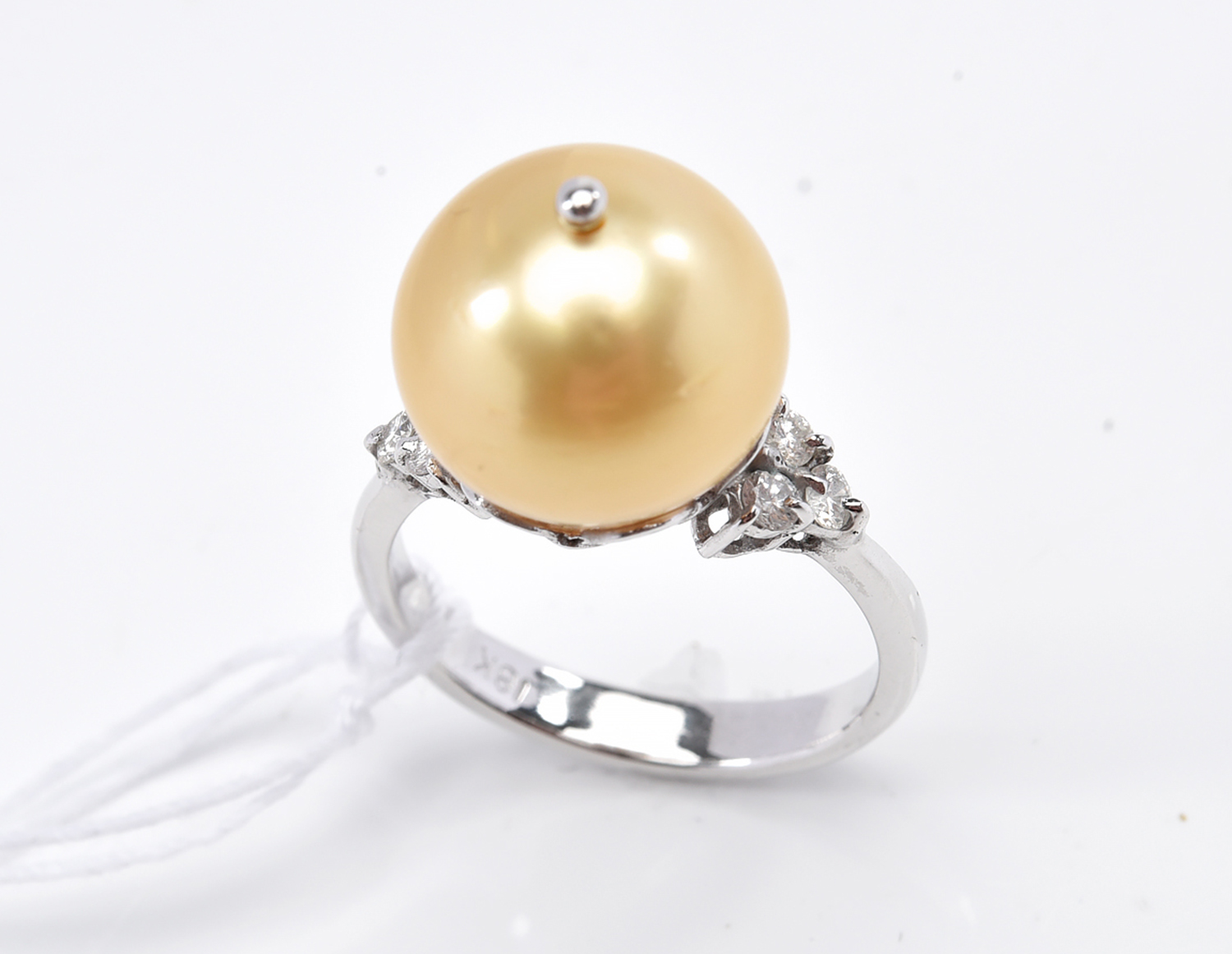 A GOLDEN SOUTH SEA PEARL AND DIAMOND RING IN 18CT WHITE GOLD, THE ROUND PEARL MEASURING 12.2MM, SIZE L, 5.2GMS