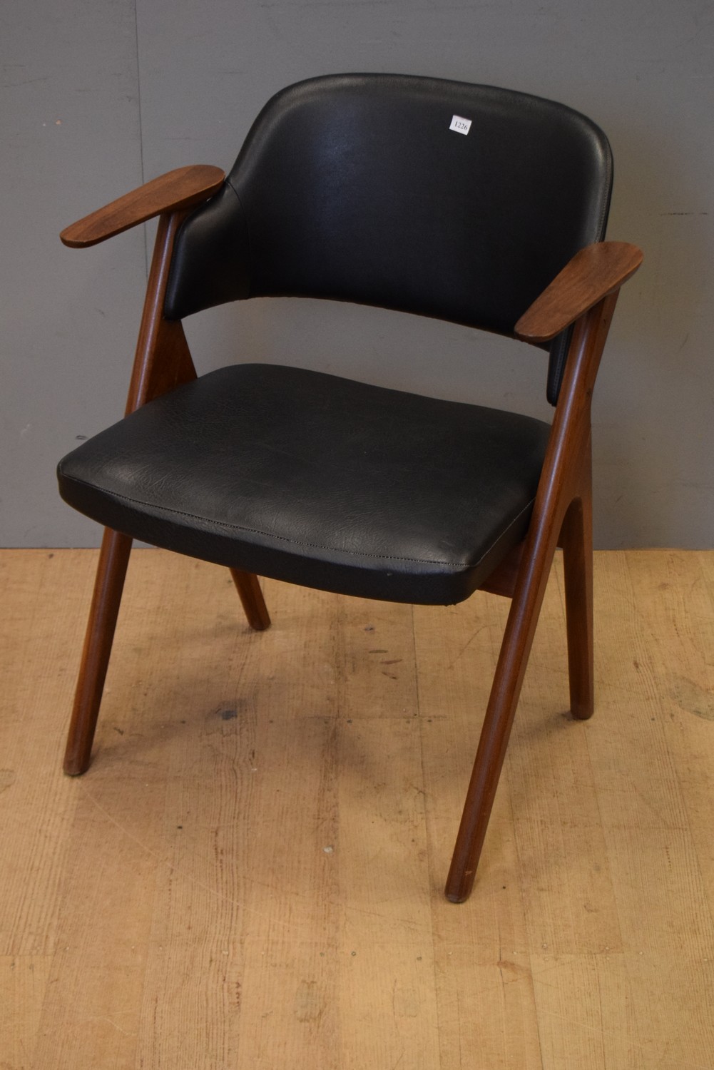 A BLACK LEATHER DANISH ARMCHAIR, STAMPED (80H X 63W X 53D CM)