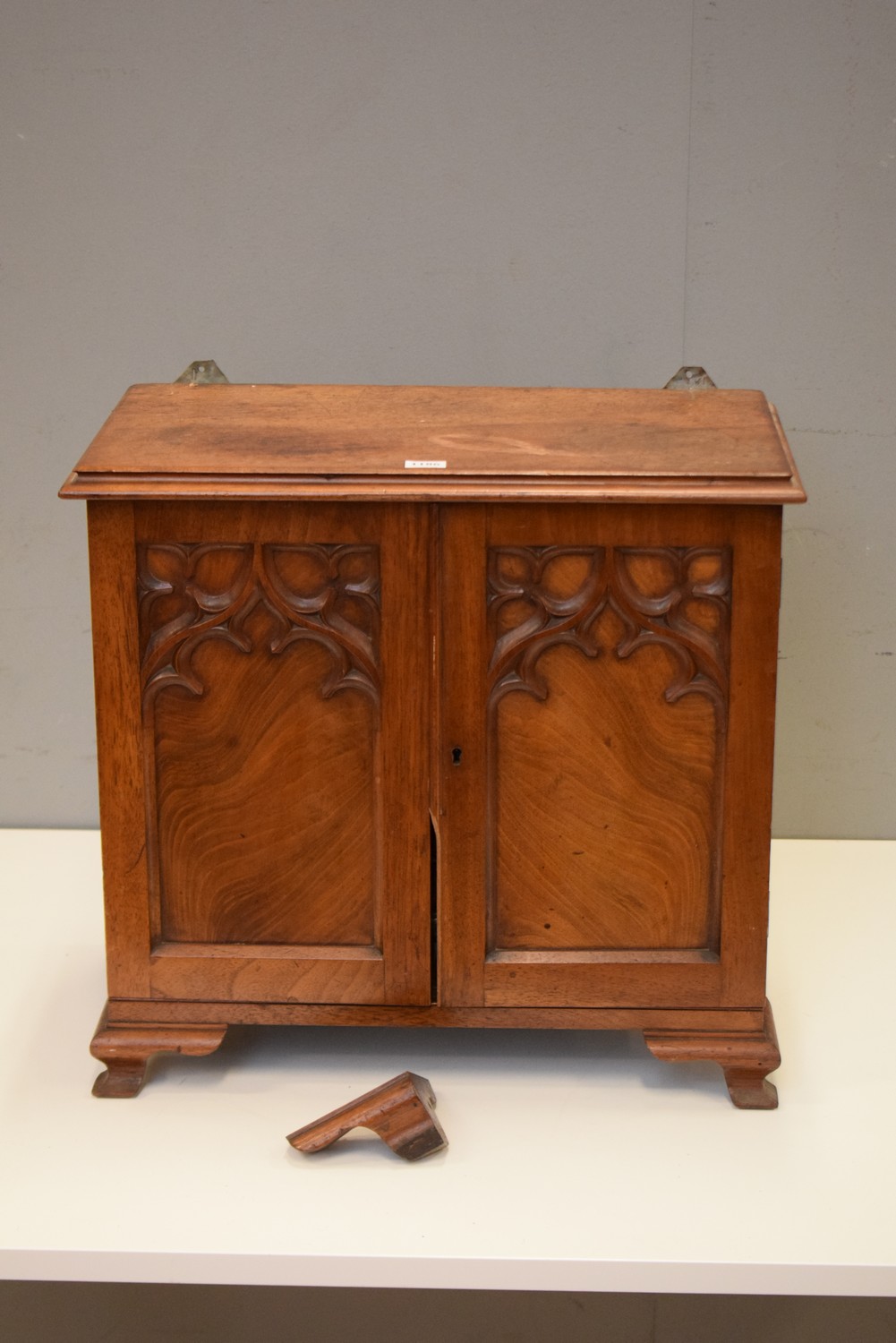 A SMALL ARTS AND CRAFTS CUPBOARD (A/F) (43H X 46W X 27D CM)