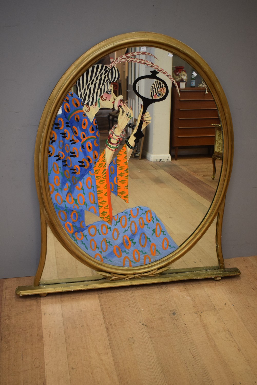 AN ERTE STYLE PAINTED MIRROR (146H X 137W CM)