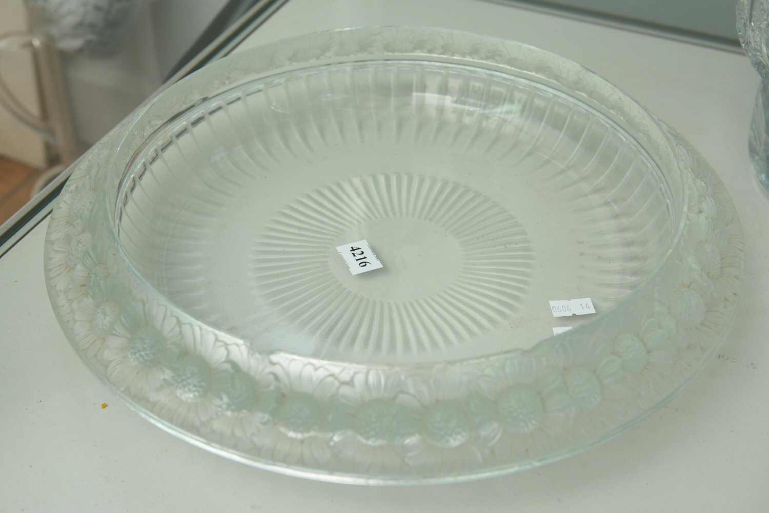 A LALIQUE 'MARGUERITE' PATTERN BOWL (CHIPS) DIA. 36CM