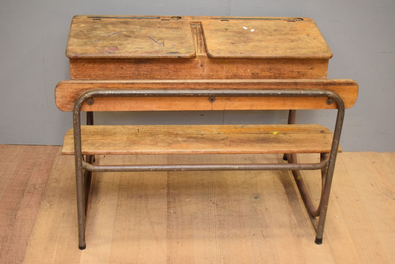 A CHILDREN'S TWIN TIMBER DESK (70H X 107W X 80D CM)