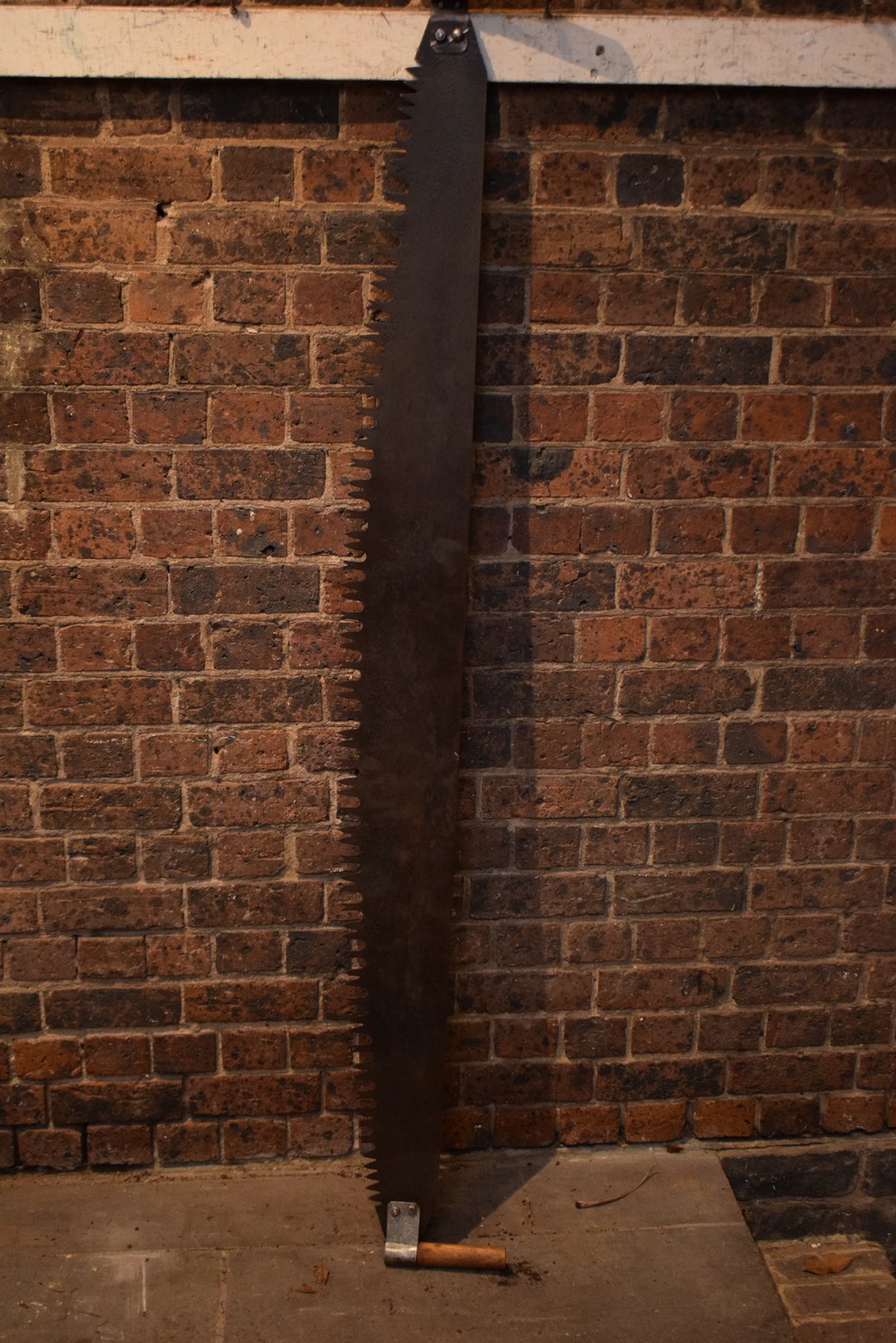 A LARGE ANTIQUE TWO MAN SAW (193 CM H)