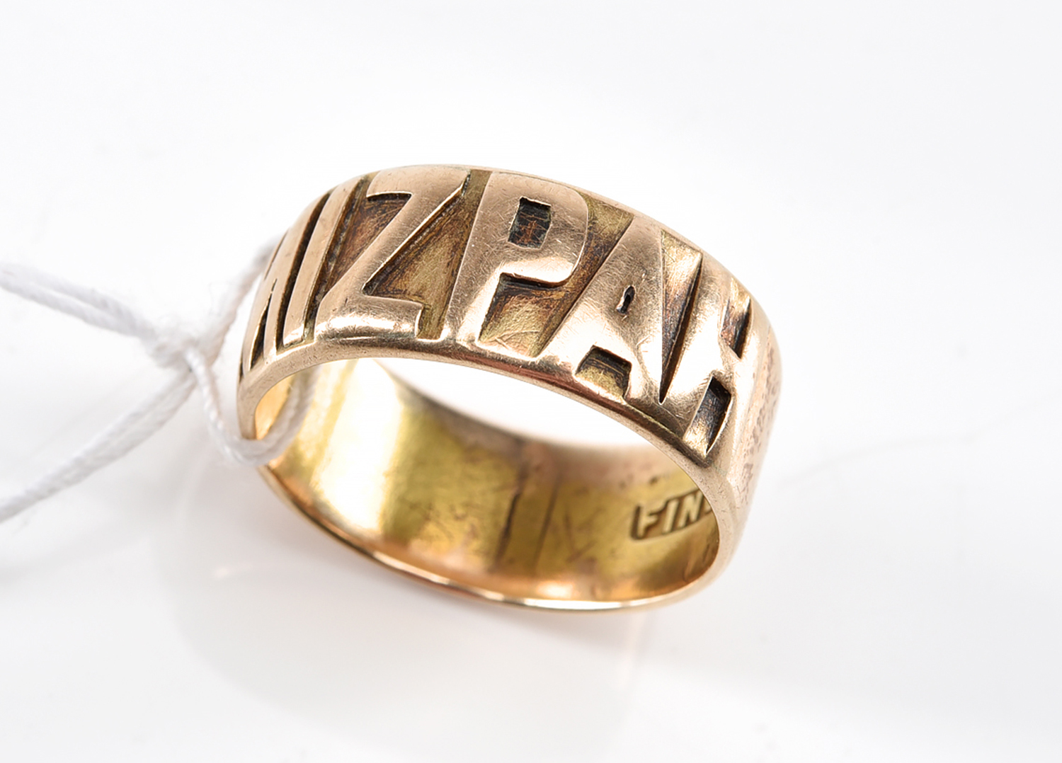 AN ANTIQUE MIZPAH RING IN 15CT GOLD, SIZE O, STAMPED FINCK, 6.3GMS