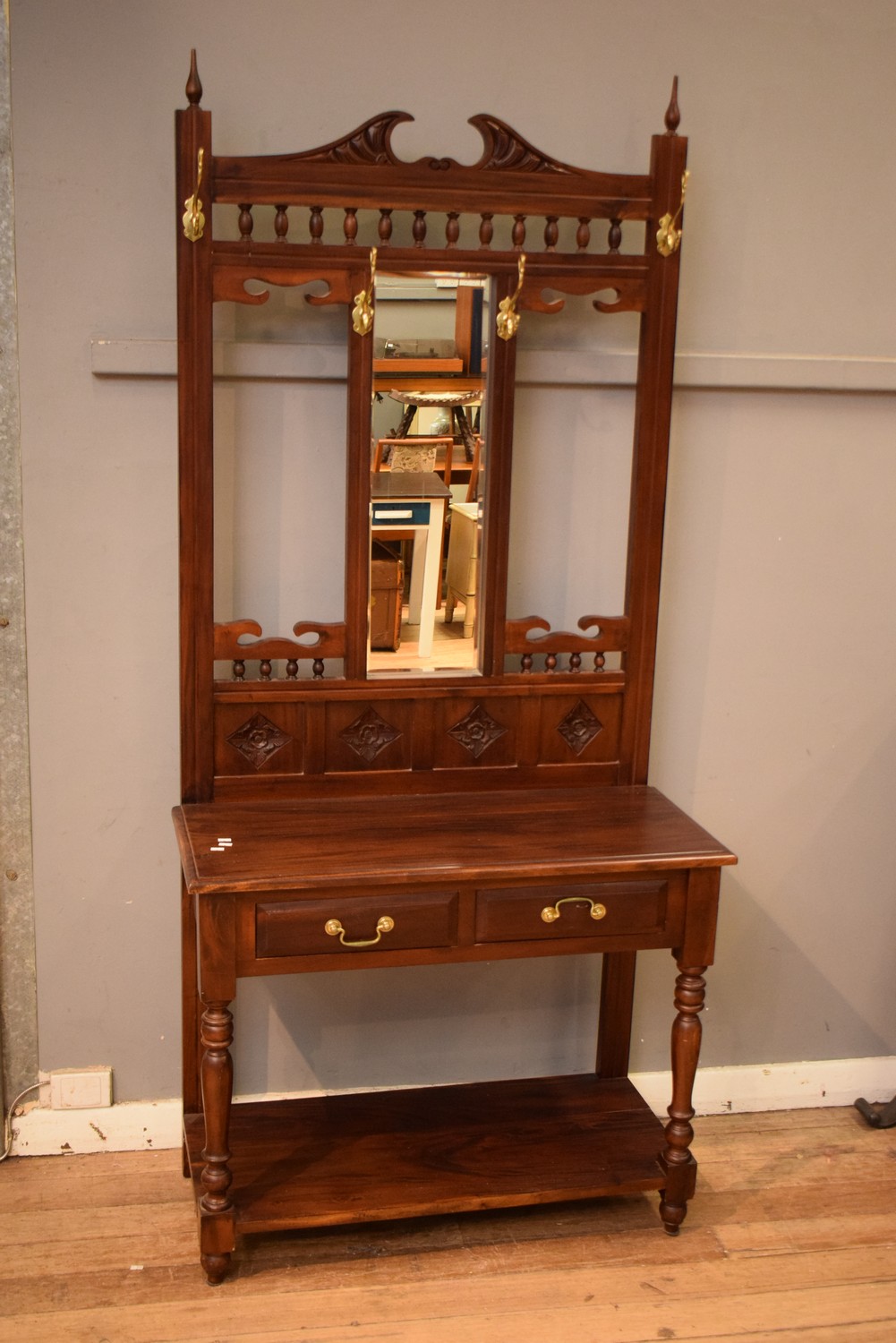 A TIMBER TWO DRAWER HALL STAND (207H X 94W X 47D CM)
