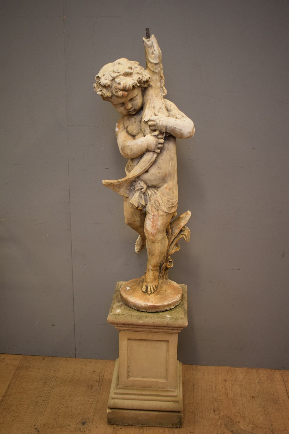 A FOUR PIECE FRENCH DECORATIVE CHERUB GARDEN STATUE (160 H) (PLEASE NOTE THIS ITEM MUST BE REMOVED BY CLIENTS OR CARRIERS AT THE CUSTOMERS EXPENSE)