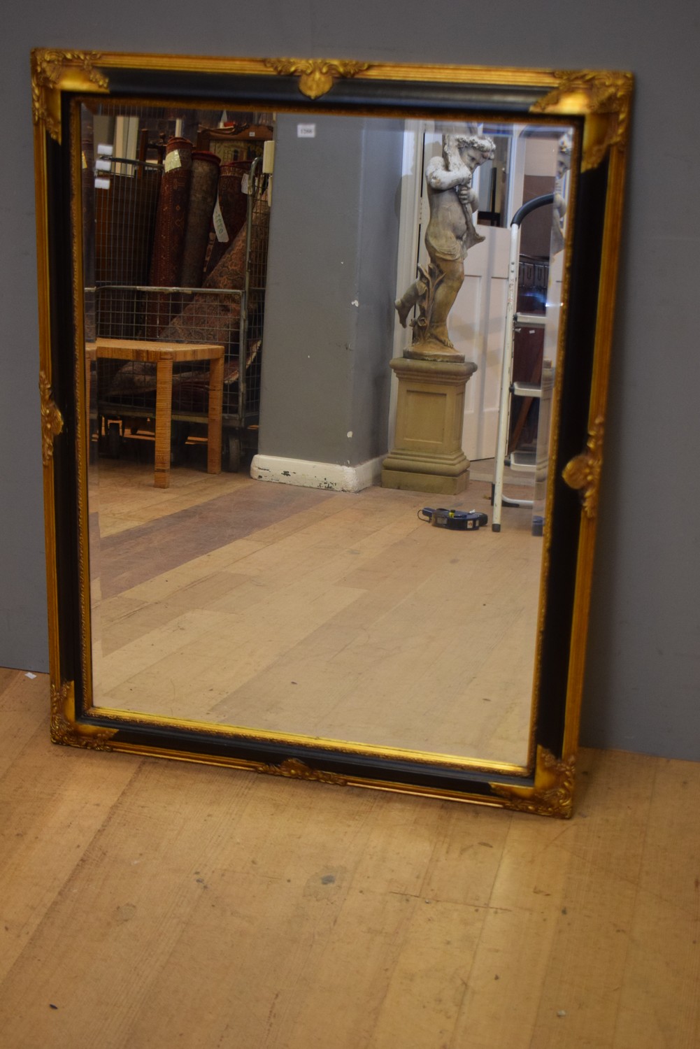 A GILT AND EBONISED WALL MIRROR (116H X 91W CM)