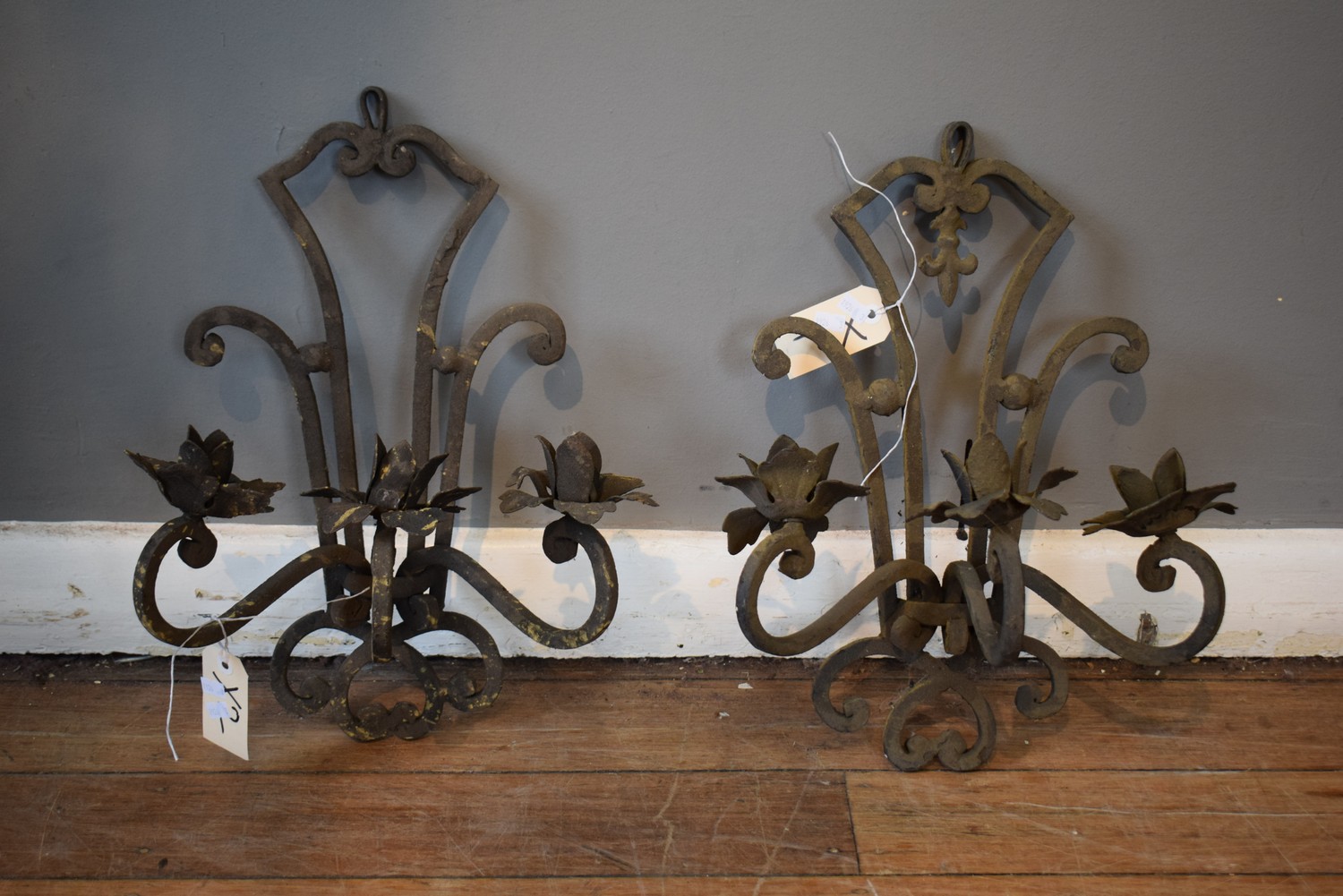 A PAIR OF FRENCH PROVINCIAL WROUGHT IRON WALL SCONCES (45H X 40W CM)