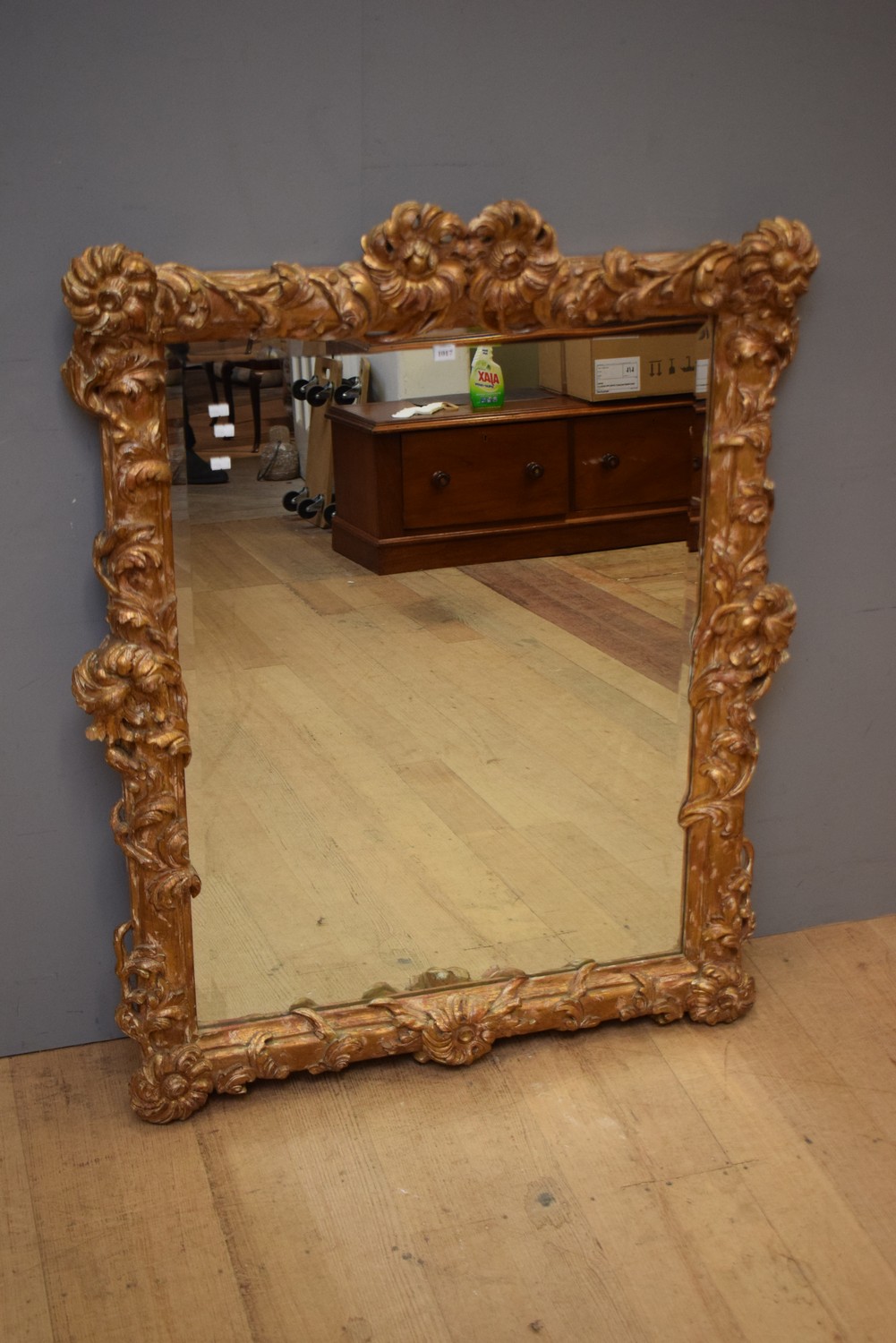 AN IMPRESSIVE 1960S FRENCH GILTWOOD MIRROR WITH BEVELLED MIRROR (115H X 96W CM)