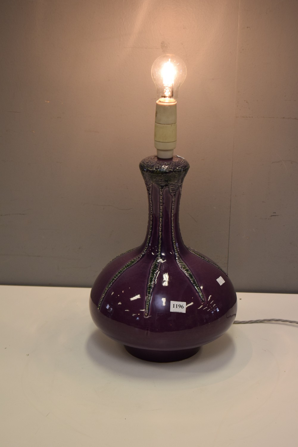 AN IMPRESSIVE 1950S AUSTRALIAN GLAZED ELLIS POTTERY PURPLE LAMP (46H CM)
