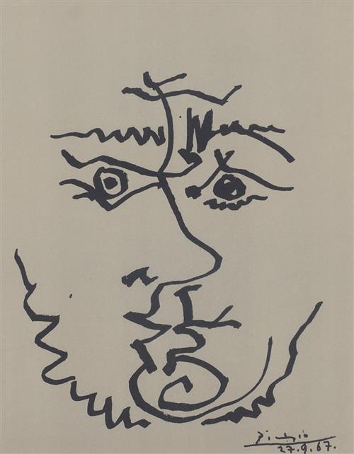 PABLO PICASSO (SPANISH/FRENCH, 1881-1973) Homme barbu songeant à une scène des mille et une nuits from Séries 347 1968 etching 6/50